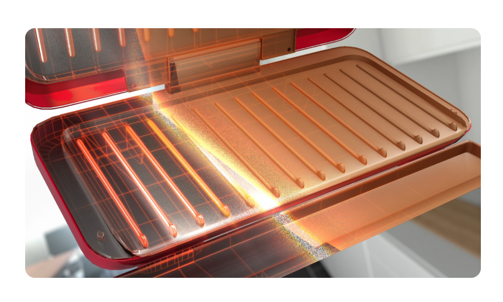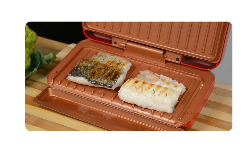 Двата нагревателя изпичат равномерно от двете страни, така че не стоите над тигана и не „пазите“ храната.