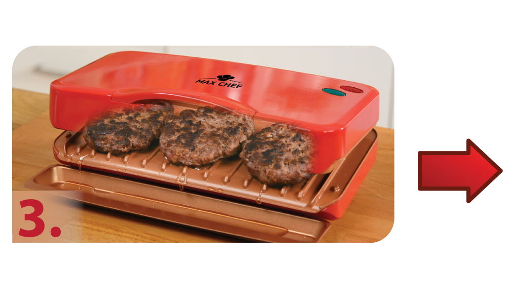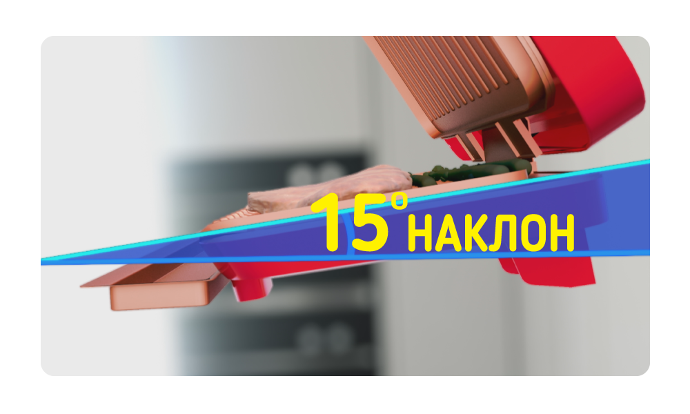 3. Наклон 15° – докато се пече, мазнината се стича и се събира в тавичката.