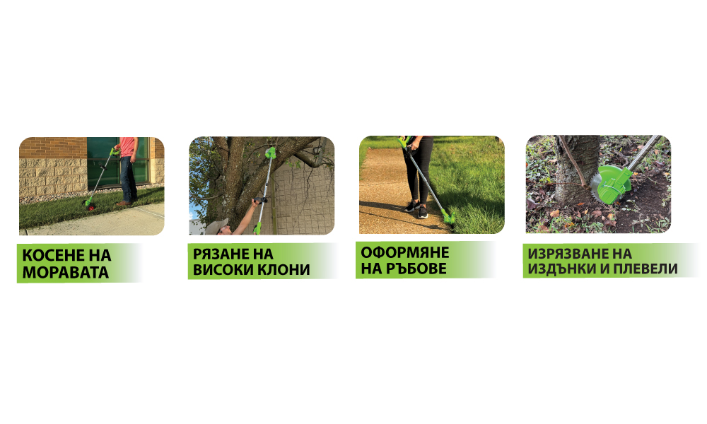 ○ Регулируема телескопична дръжка и ръкохватка на 90° ъгъла - настройте дължината и ъгъла на рязане според вашите нужди