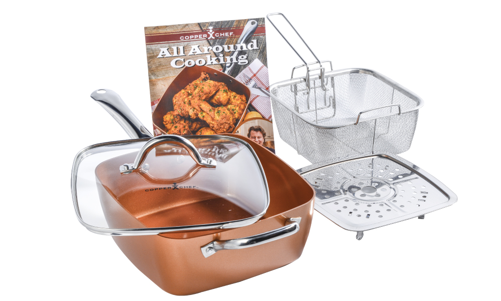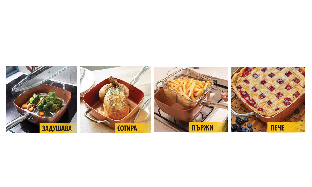 Copper Chef Pan е универсален тиган 6 в 1, който може да замени повечето съдове в кухнята: пържене, печене, варене, задушаване,