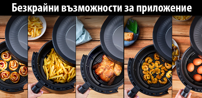 - Готвене с горещ въздух за по-леко „пържене“ с минимално количество мазнина