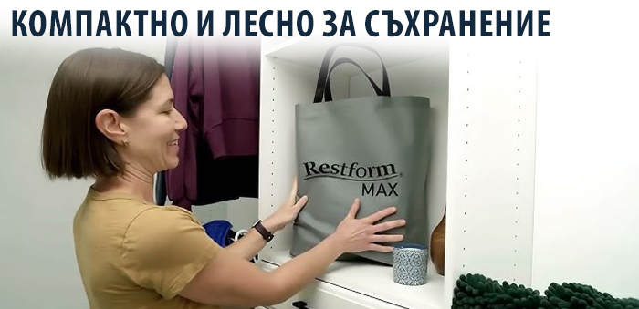 След употреба Restform Max® се изпуска бързо, сгъва се компактно и се прибира удобно във включената в комплекта чанта за носене. Така заема минимално място и е винаги готово за следваща употреба.