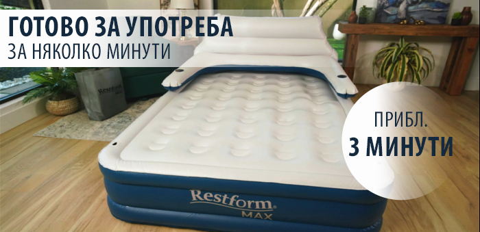 Открийте Restform Max- надуваемото легло с перфектна височина, създадено да ви осигури удобен, стабилен и спокоен сън у дома, при гости, на почивка или къмпинг. С включена електрическа помпа, включена облегалка и практични поставки за чаши, то съчетава функционалност, комфорт и лесно съхранение в едно.