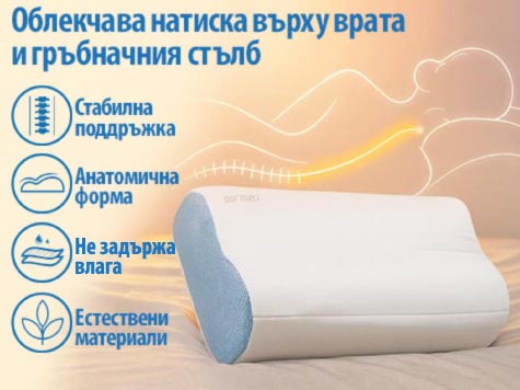 Независимо дали спиш по гръб или настрани, възглавницата поддържа врата и гръбначния стълб в правилна позиция, което намалява напрежението и болките при събуждане.