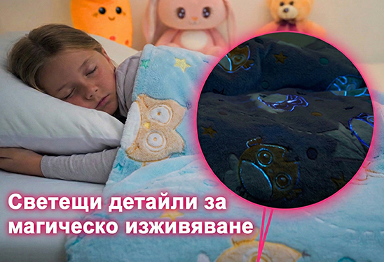 Светещите елементи върху одеялото внасят меко сияние в тъмното и превръщат всяка вечер в приказка.