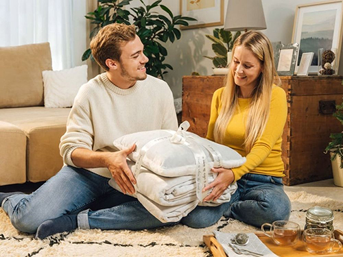 Dormeo Warm Hug не е просто одеяло и възглавница – това е израз на любов, грижа и комфорт. С двустранното си одеяло – от едната страна с мека плюшена материя, от другата – с модерен кадифен плат – комплектът ви дарява с уют и стил в едно. Независимо дали го използвате в хола, спалнята или на път, мекотата му ще ви прегърне и затопли в студените дни.