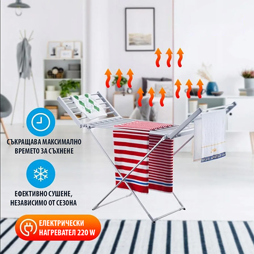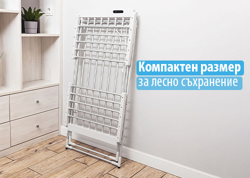 Дори без включване към захранване, моделът може да се използва като стандартен сушилник за дрехи. Това е практично предимство – имате един продукт, който върши работа в повече ситуации.