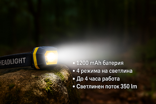 - Светлинен поток 350 лумена – за ярка и надеждна осветеност