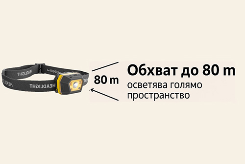 - Обхват до 80 м – осветява голямо пространство