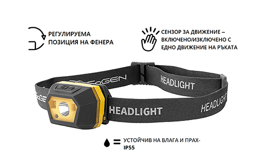 Благодарение на вградения инфрачервен сензор, не е нужно да натискате бутони – само с едно махване на ръката пред челника, той се включва или изключва. Идеално решение, когато ръцете ви са мокри, мръсни или заети.