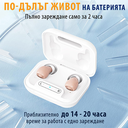 Hearizon се зарежда в специална кутия, която служи и като преносима батерия. Можете да презаредите усилвателите до три пъти в движение, без нужда от контакт. Усилвателят работи до 20 h. с едно зареждане, което го прави перфектен вашите социални дейности.
