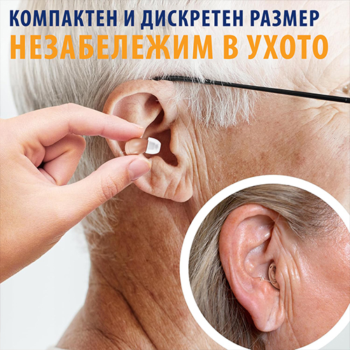 Миниатюрният дизайн гарантира, че устройството остава незабелязано в ухото. Никой няма да знае, че го носите, а вие ще се наслаждавате на свобода и комфорт. Hearizon е проектиран така, че да не натоварва ухото и да може да се носи часове наред без дискомфорт.