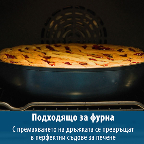 Интелигентната дръжка се прикрепя към всеки тиган и тенджера, позволявайки плавен преход от котлон до фурна, а след това – в хладилника. Заема минимално място при съхранение.