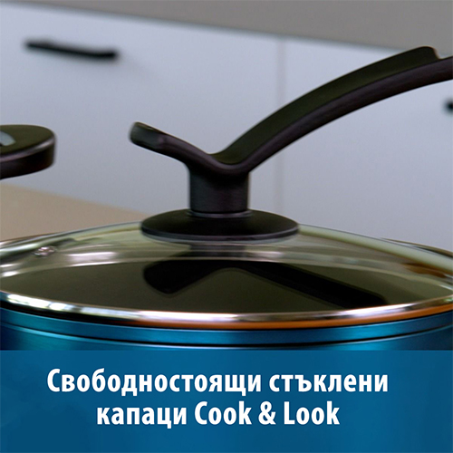 Стъклените капаци позволяват наблюдение по време на готвене, без да се вдига капака. А когато го свалиш – стои самостоятелно и предпазва плота от капки.