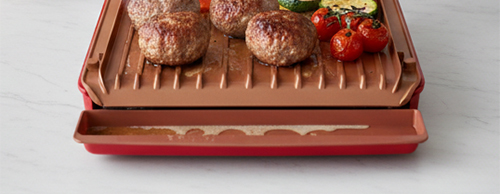 Специалният 15-градусов наклон на плочите позволява излишната мазнина да се оттича бързо и лесно в интегрираната тава, което прави ястията по-здравословни и леки.