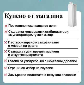 - Спестяваш до 90% спрямо цената на готовото мляко от магазина.