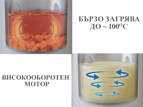 Горещ режим – приготвя соево, бадемово, мляко от кашу и супи с кадифена текстура.
