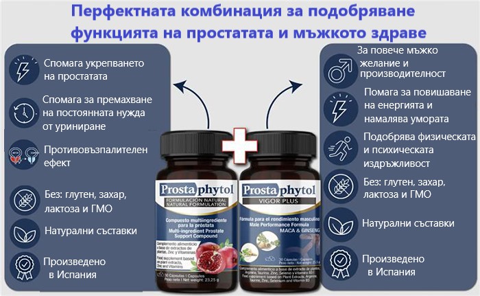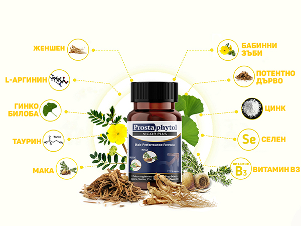 Сместа от активни съставки в Prostaphytol Vigor Plus е насочена конкретно към проблемите с простатата и мъжката потентност. Разработена натурална и мощна формула, която дава отлични резултати без операция.