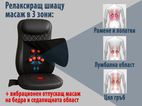- 3 масажни зони – рамене и лопатки, лумбална област или цял гръб