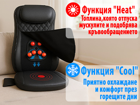 Функцията Heat доставя приятна топлина, която отпуска мускулите и подобрява кръвообращението, докато режимът Cool осигурява приятно охлаждане и комфорт през горещите дни.